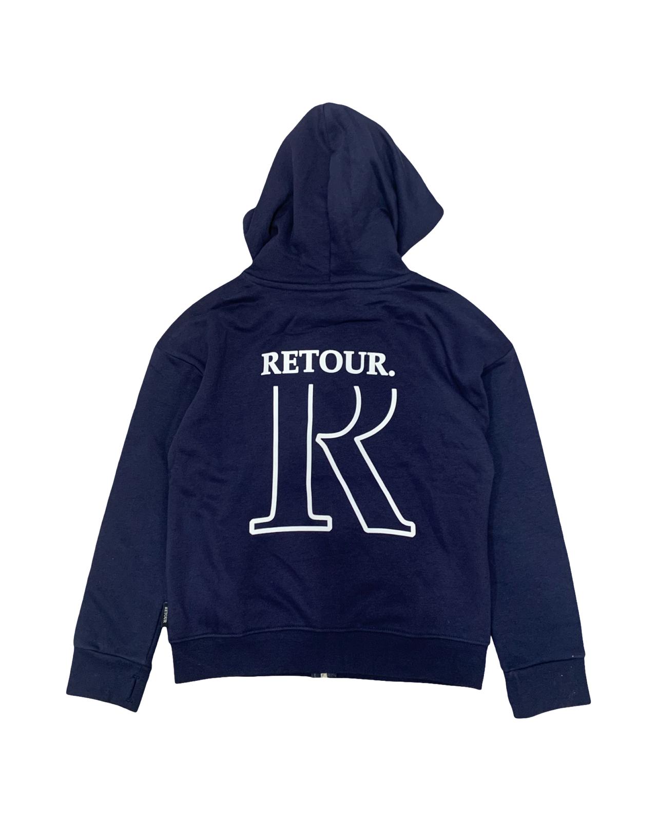 Felpa aperta blu con cappuccio foderato e logo bianco