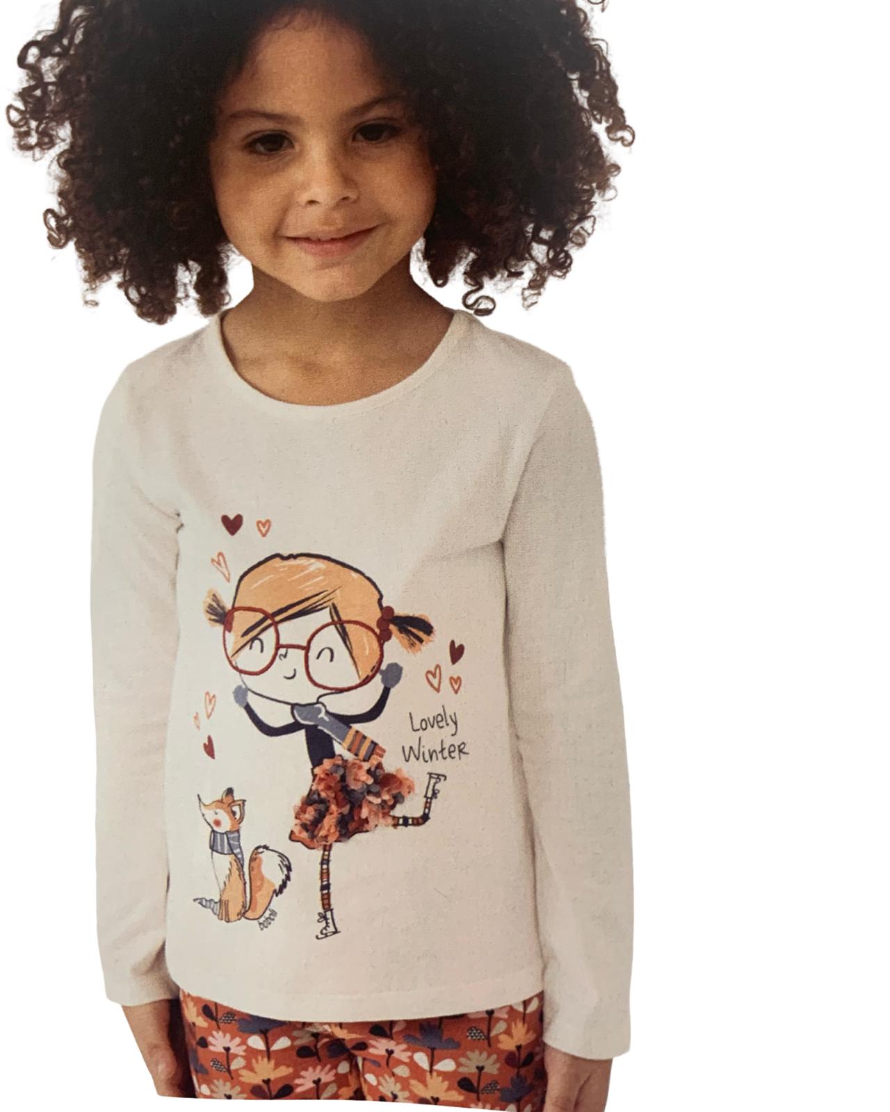 Maglietta a maniche lunghe per bambina bianco sporco con stampa